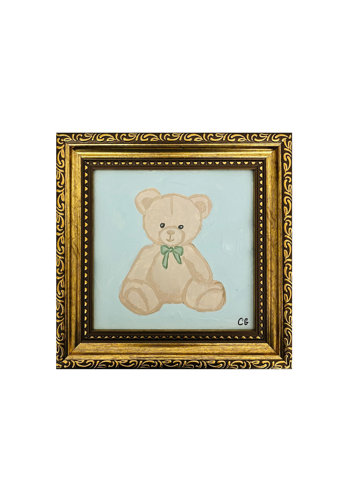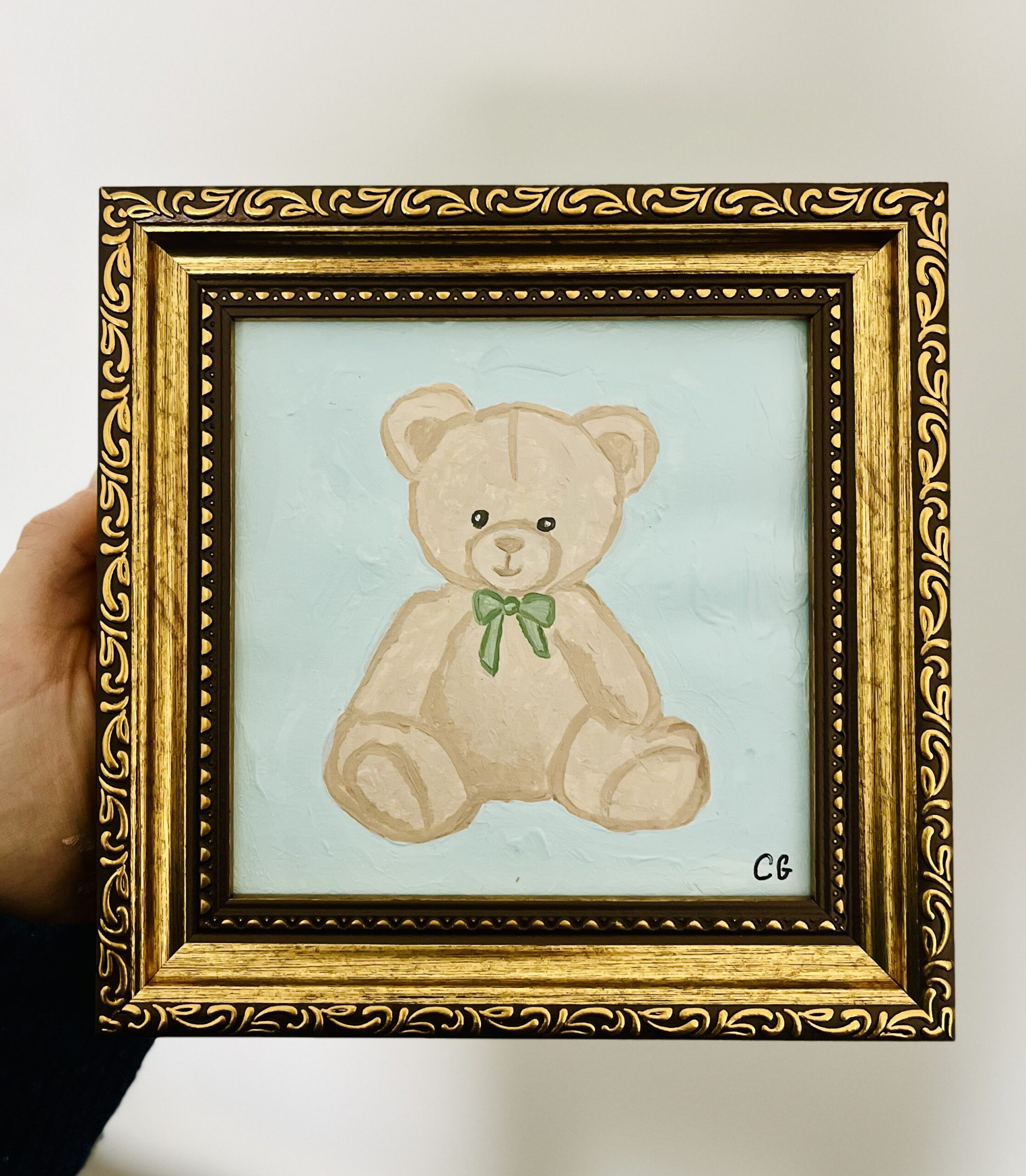 Original charming bear painting in a 5 in x 5 in frame. Signed.