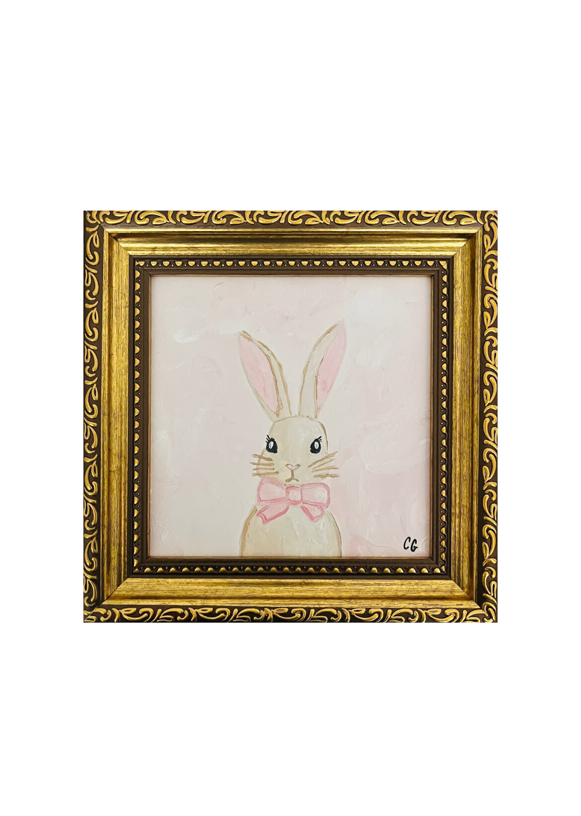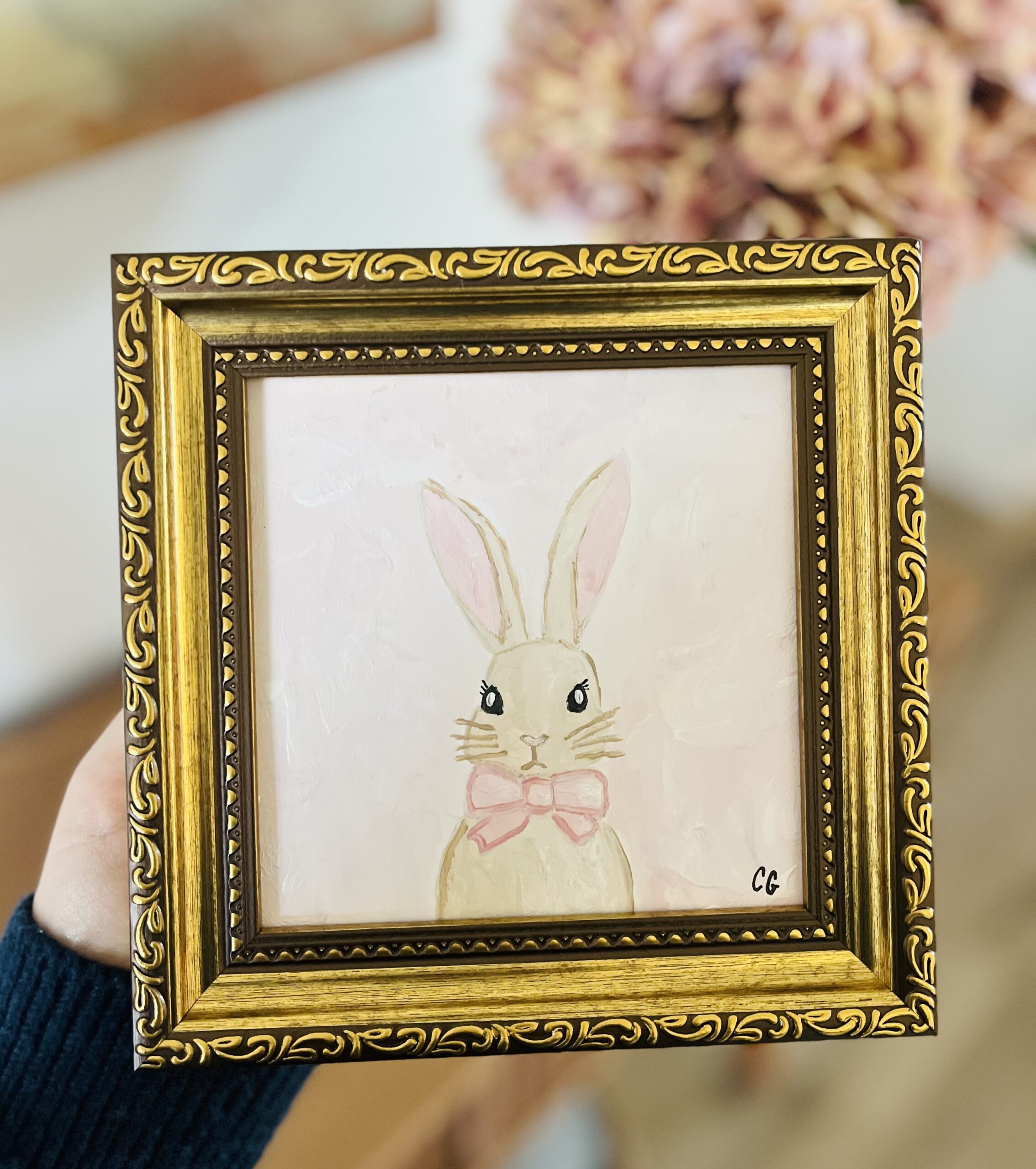 Original charming bunny painting in a 5 in x 5 in frame. Signed.