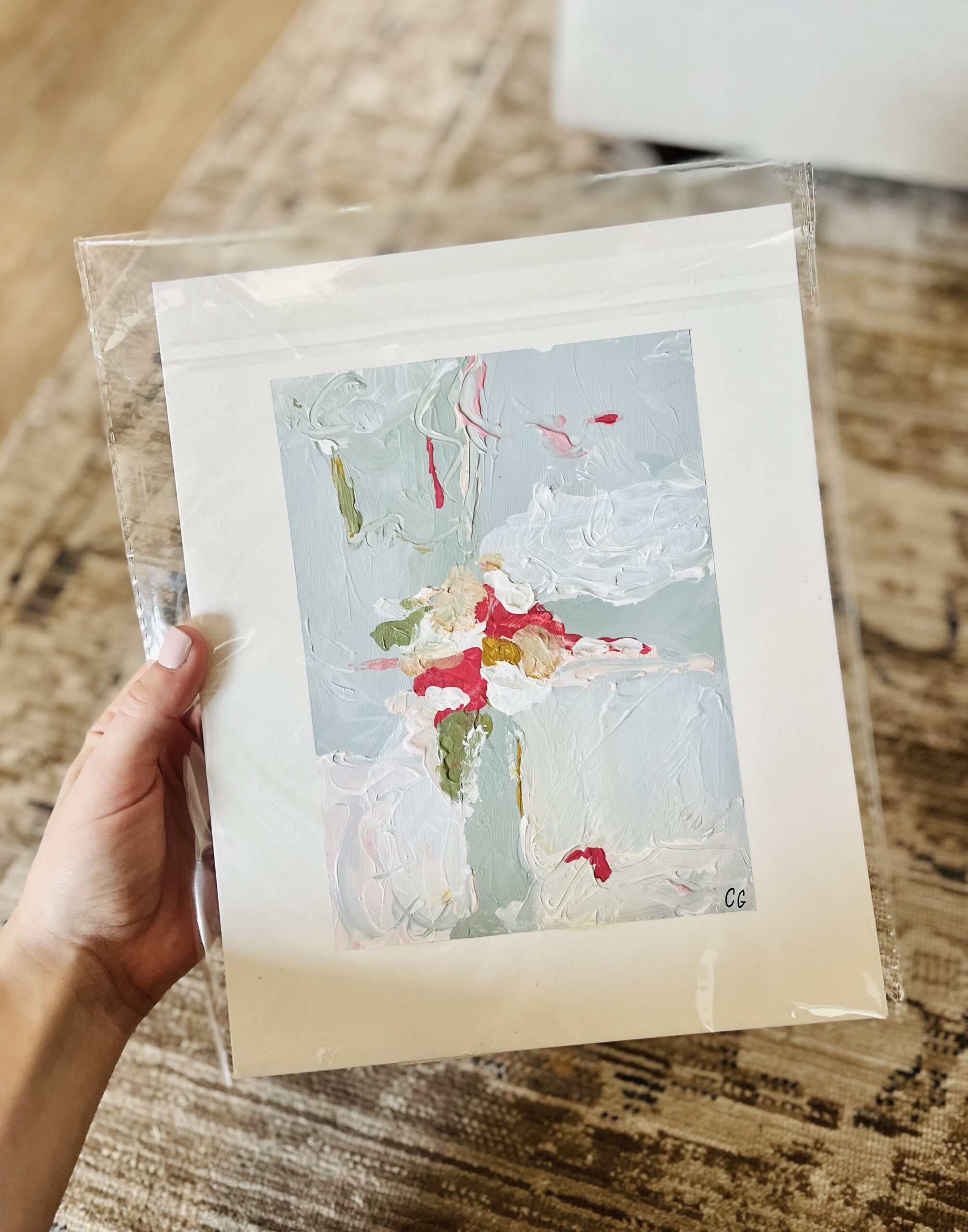 Original abstract painting on fine art paper. Paper is 8 in x 10 in. Signed.